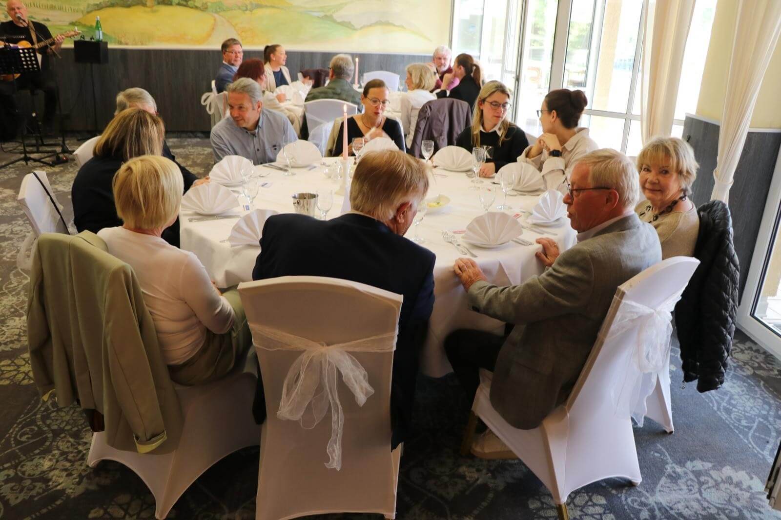Kulinarisch wurden die Gäste mit einem tollen 3-Gänge-Menü verwöhnt, das keine Wünsche offenließ. Ein besonderes Highlight erwartete die Gäste beim Dessert: Die Lebenshilfe-Eis-Torte sorgte für Begeisterung und rundete das Menü ab.